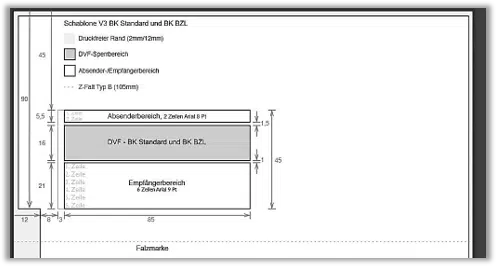 „Am 08.02.2018 wurden wir Sie via E-Mail darüber informiert, dass Sie bitte bis 25.02.2018 Ihre Formularvorlagen für die E-POSTBUSINESS API ggf. an eine neue Schablone anpassen. Hintergrund hierfür sind die seit Anfang des Jahres angepassten Regeln zur Freimachung von Sendungen (DV-Freimachung). Der geänderte Aufdruck der DV-Freimachung erfordert, dass bestimmte Bereiche im Adressfeld frei bleiben müssen. Zukünftig bekommt der Versender bei einer Verletzung der neuen Sperrflächen eine Fehlermeldung angezeigt und somit die Möglichkeit, die Adressdaten zu korrigieren. Nach erfolgter Korrektur kann die Sendung versandt werden.